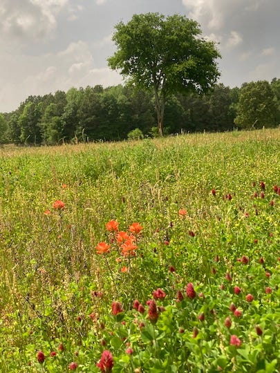 Our part of Texas is rolling hills of grass and pine, live oak, sweet gum, etc.. It’s also extremely humid, but that means it is green, green, green, so many beautiful shades. In March, April, and May the wildflowers put out their finery and the green is interlaced with jewels of coral, amethyst, garnet, and gold. “Even Solomon in all his glory was not arrayed like one of these1.” And it’s not lilies of the field. We’re talking coral Indian paintbrush, garnet-red clover, golden coreopsis, and pink evening primroses (to name just a few). Name a color, and we can find it, even Texas bluebonnets if we search (that’s one flower not too common in our parts). I feel like each year we’re here I see more—they blanket the fields and highway verges. You have to be blind or glued to a screen not to see them, and pretty hardened not to have a lift of spirits at the sight of them. Coral fire bleeds into dark red, green and gold flood fields, delicate swaths of the palest of pinks flutter beside gray tarmac. This was the riot we passed as we drove to Wendy’s on Monday.
