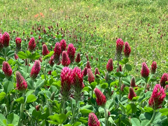 “What color would you call the clover?” I asked Evie. “Crimson?”